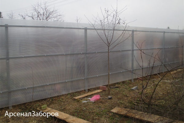 Компания «АрсеналЗаборов» предлагает надежные и долговечные ограждения из поликарбоната для загородного дома и дачного участка. Данный забор не боится осадков, не затеняет участок, имеет эффектный внешний вид. Листы из синтетического полимера прекрасно сочетаются с традиционными строительными материалами, что позволяет воплотить любой дизайнерский замысел. Узнать стоимость забора или оформить заказ Вы можете в режиме онлайн.