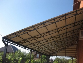 На готовые опоры привариваем металлические лаги, на которые впоследствии монтируется профлист.